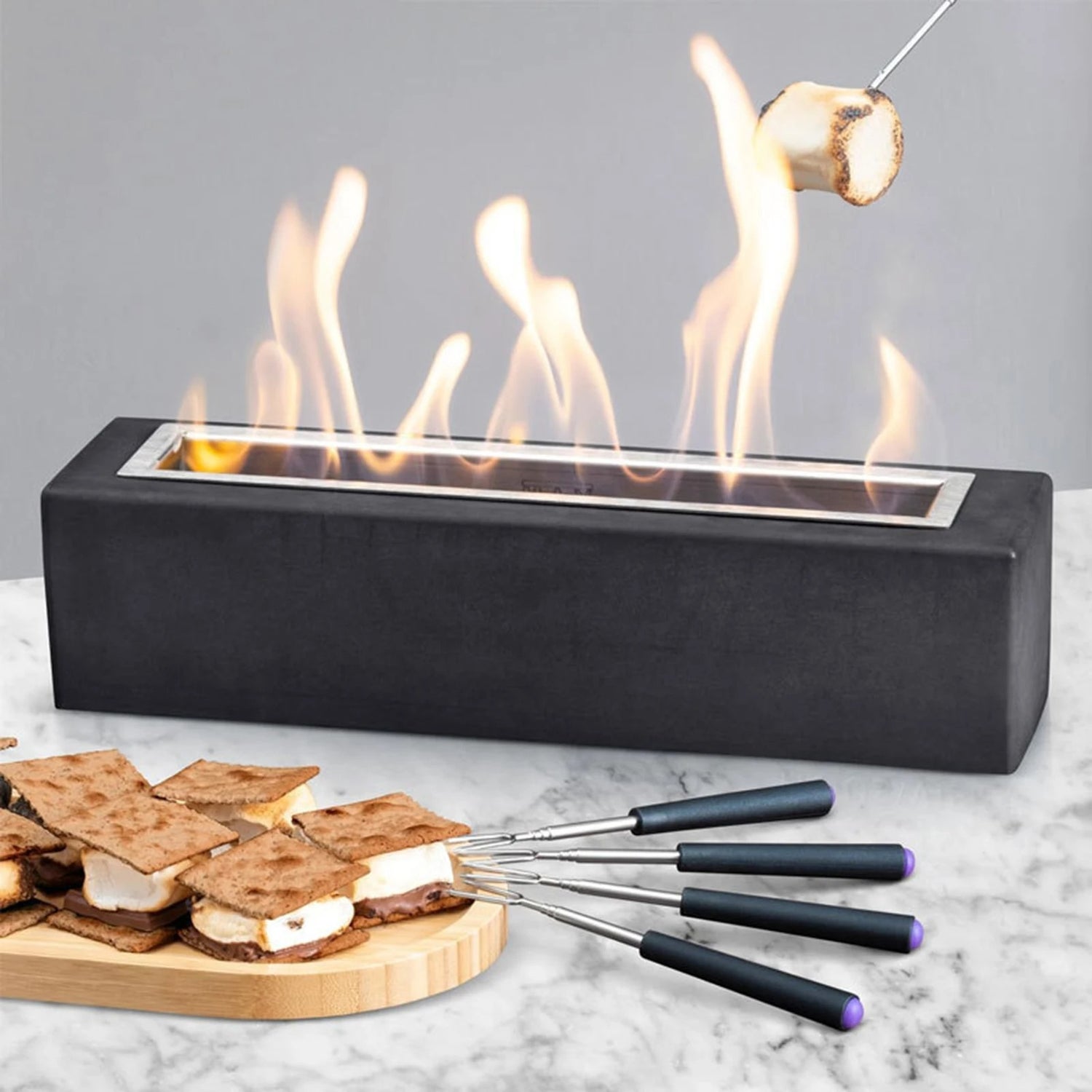 SAFE DESIGN – The heavy, stable design ensures that the table fireplace will not easily fall over, giving you extra safety during use.